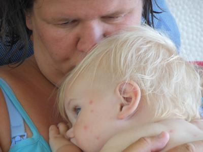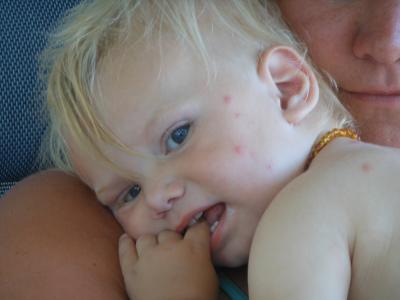 Dazu hatten wir ne miserable Nacht. Irgendwie haben sich unzählige Mücken ins Womo eingeschlichen, ich bin dauernd vom Jucken aufgewacht (immerhin habe ich so den 3. Band vom Lied von Eis und Feuer in Ruhe zu Ende gelesen!). Jonte ist total zerstochen, hat weit über 50 Stiche, er sieht aus, als hätte er Masern und Windpocken gleichzeitig.